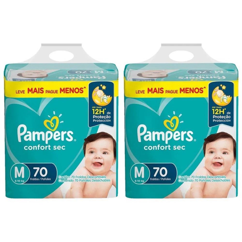 Kit 2 Fraldas Pampers Confort Sec Hiper M c/70 Unidades cada