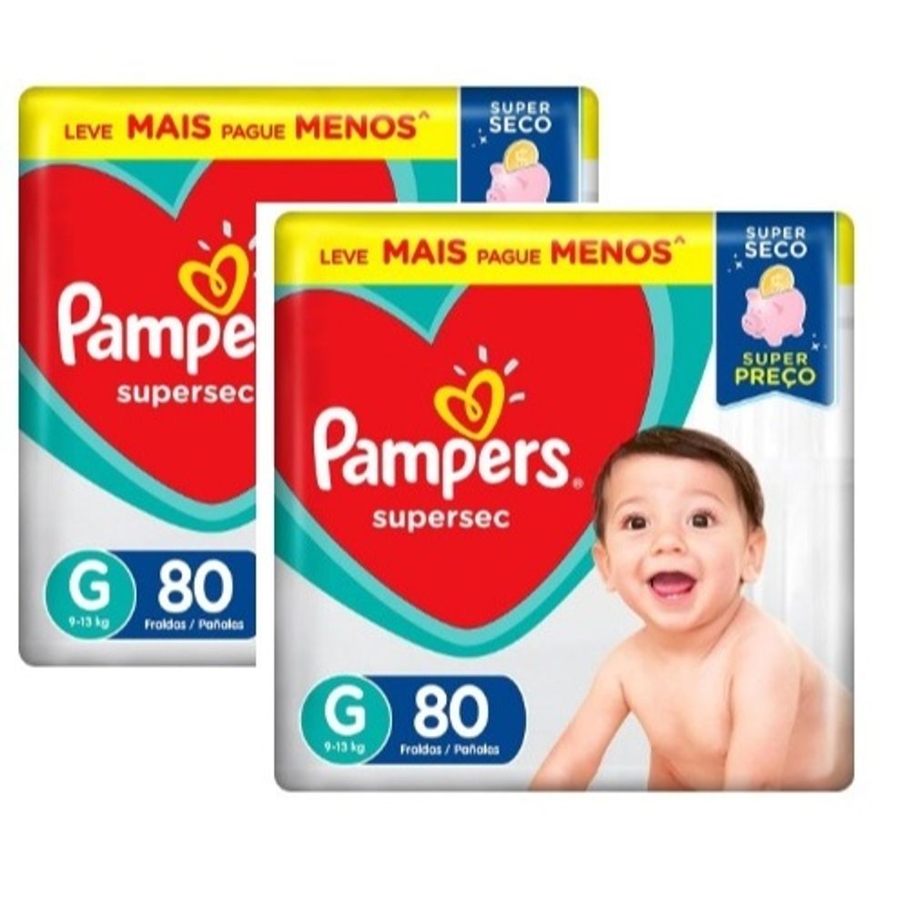 Kit 2 Fraldas Supersec ”G” Pampers Simples c/ 80 Unidades cada