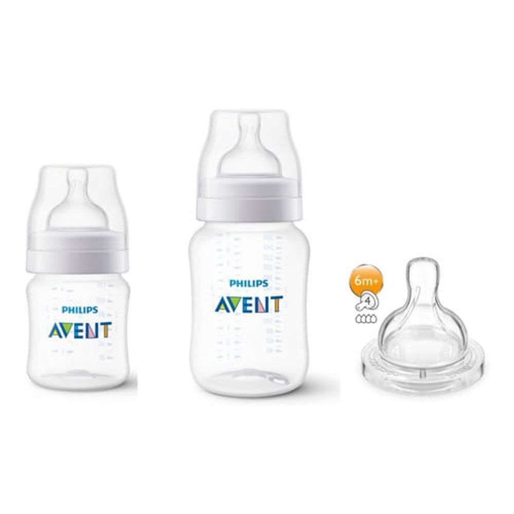Kit 2 Mamadeiras 125ML e 260ML e Bico Nº4 Anticólica Philips Avent Transparente