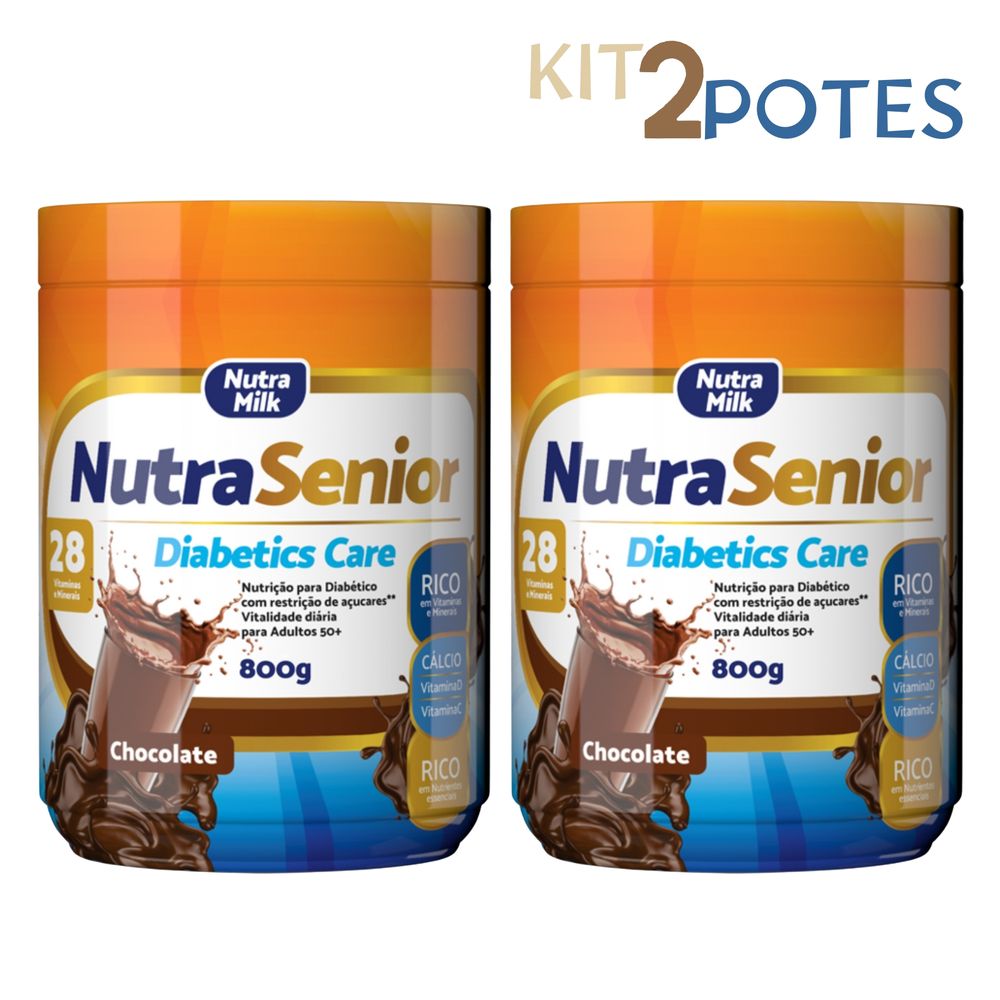 Kit 2 Nutra Senior 50+ Diabetics Care 800g Complemento Alimentar ZERO AÇÚCAR Chocolate