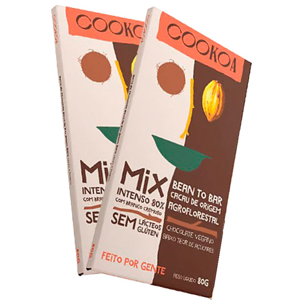 Kit 2X: Chocolate Mix Intenso 80% e Branco Cremoso Vegano Cookoa 80g