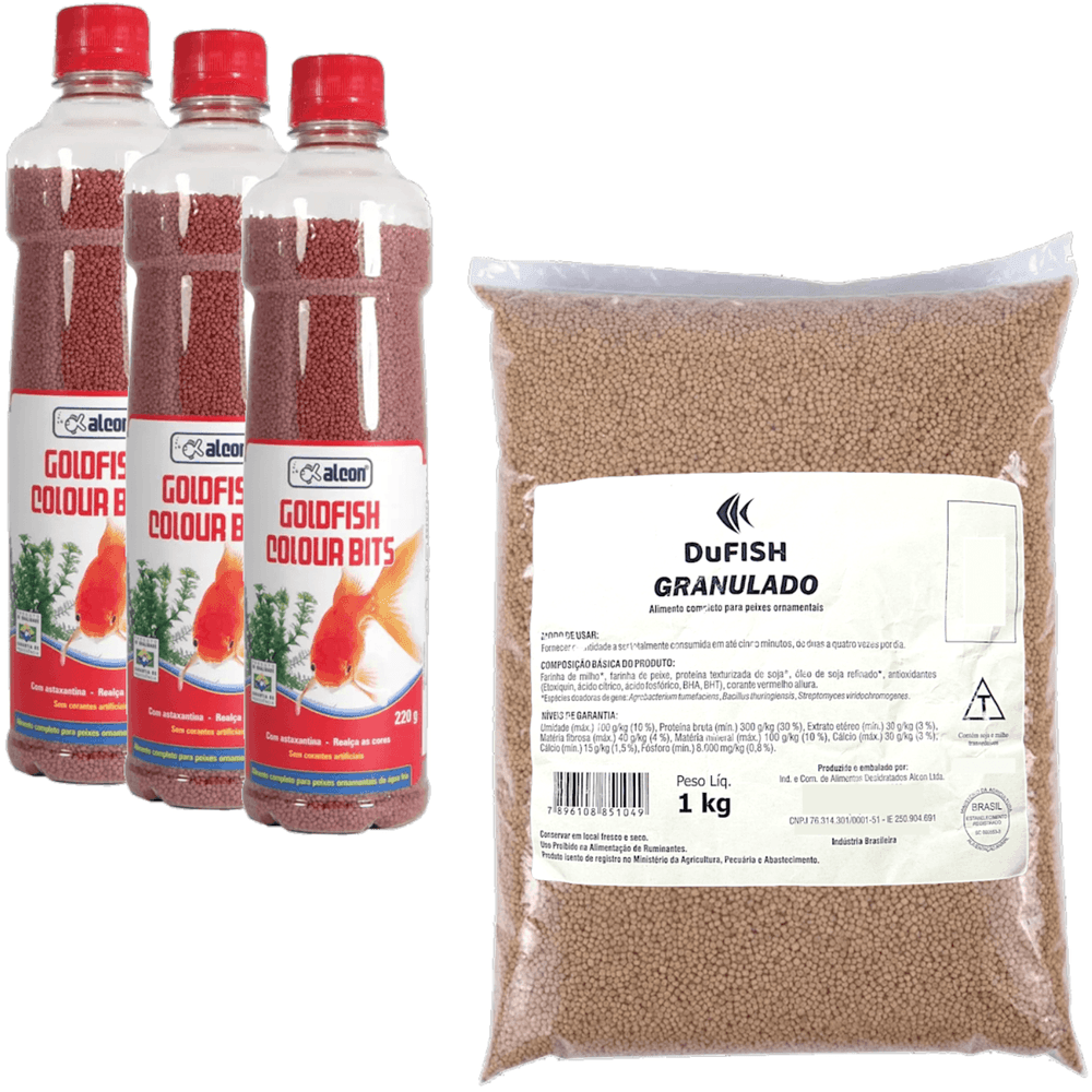 Kit 3 Alcon Goldfish Colour Bits 220g + 1 Alcon Dufish 1kg