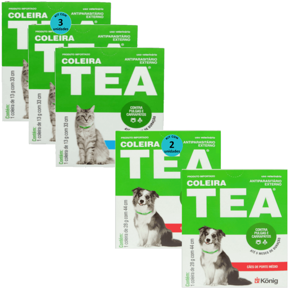 Kit 3 Coleiras TEA 327 König Gatos +2 coleiras TEA Cães Médios