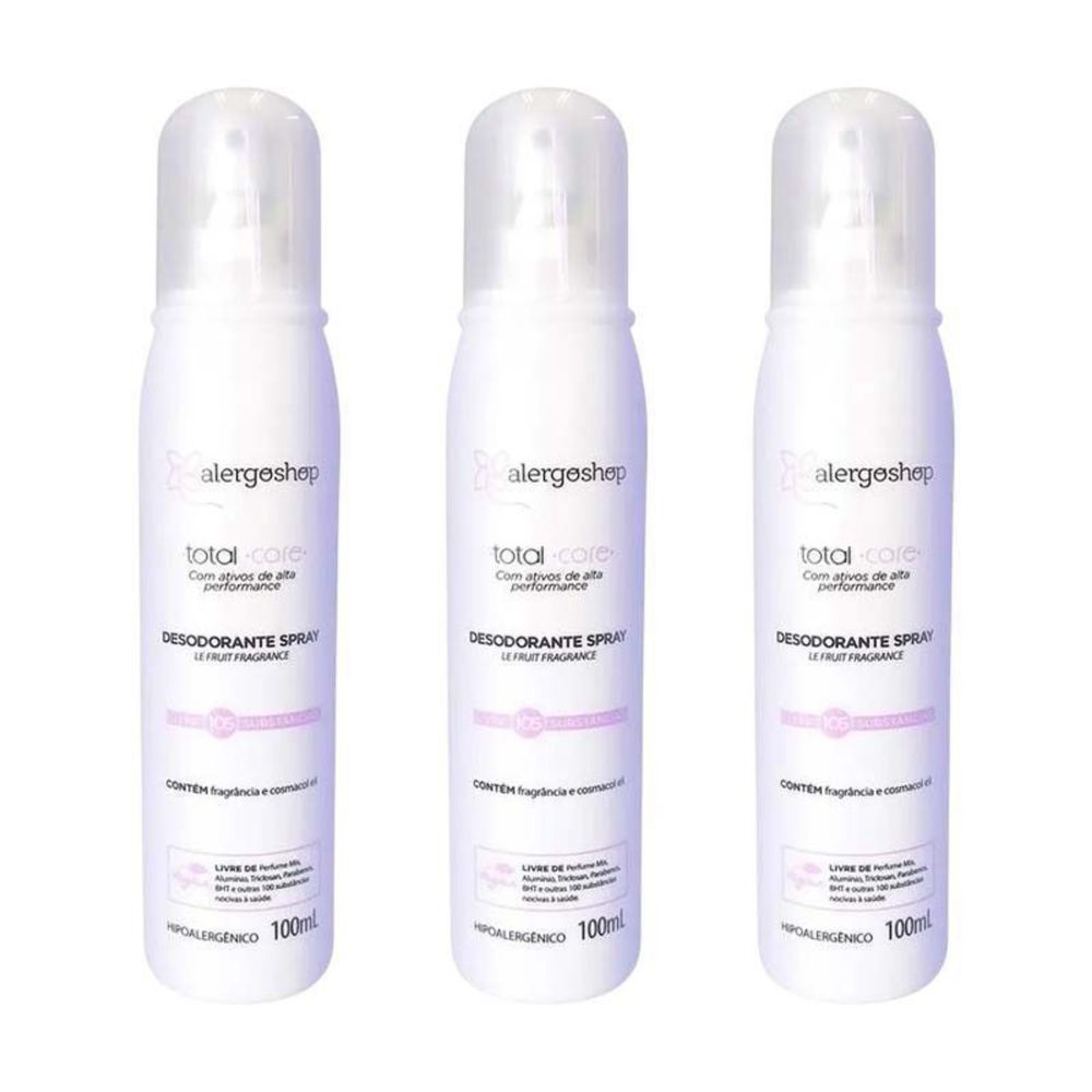 KIT 3 Desodorante Spray Le Fruit Hipoalergênico Total Care Alergoshop 100ml branco