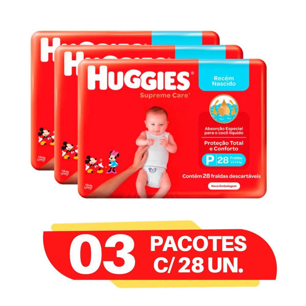 Kit 3 Fraldas Huggies Supreme Care Jumbo P 28 Unidades cada