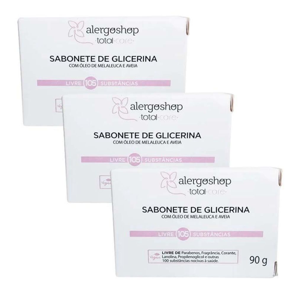 KIT 3 Sabonete em Barra Glicerina Alergoshop 90g 90g Branca