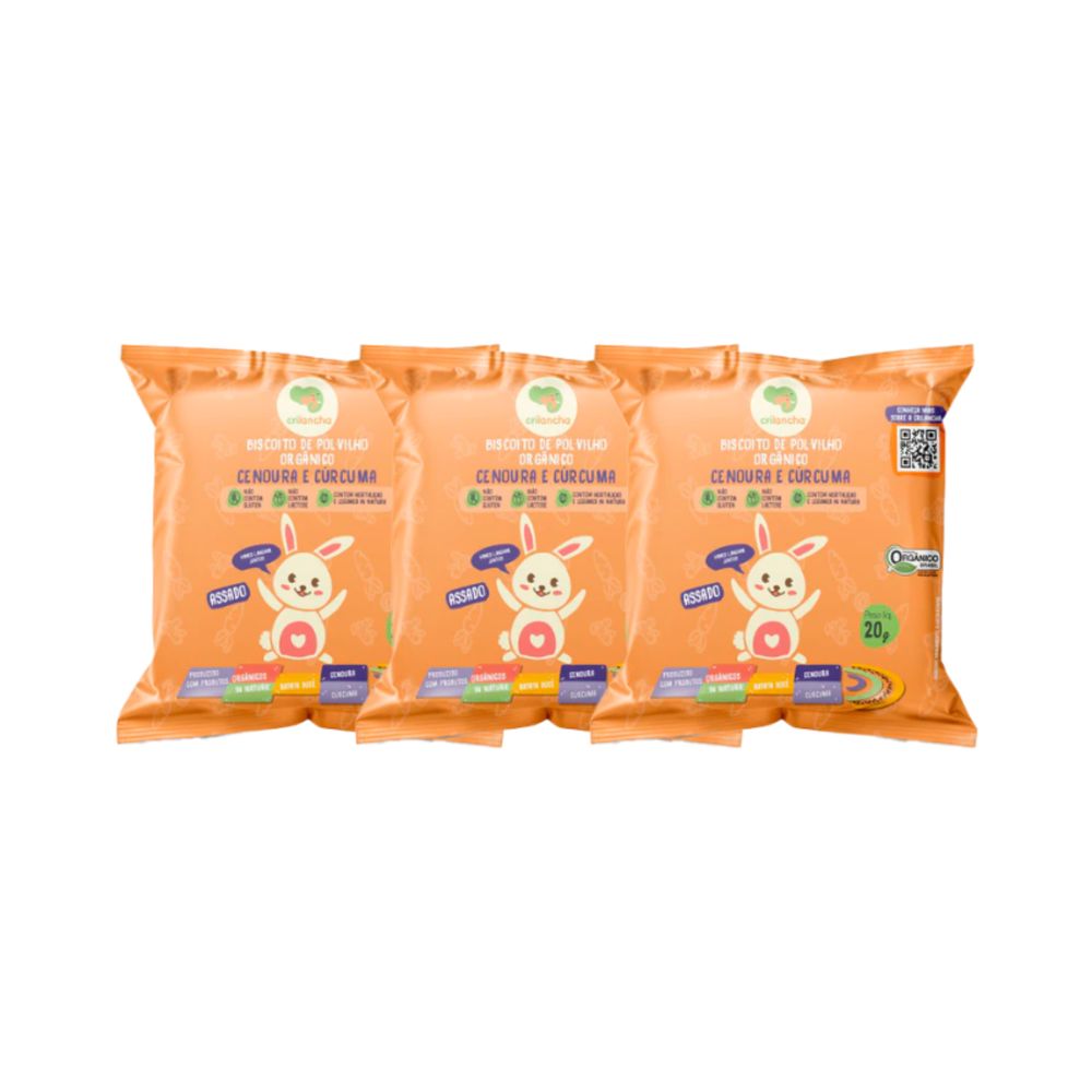 Kit 3X: Biscoito de Polvilho Cenoura e Cúrcuma Vegano Orgânico Crilancha 20g