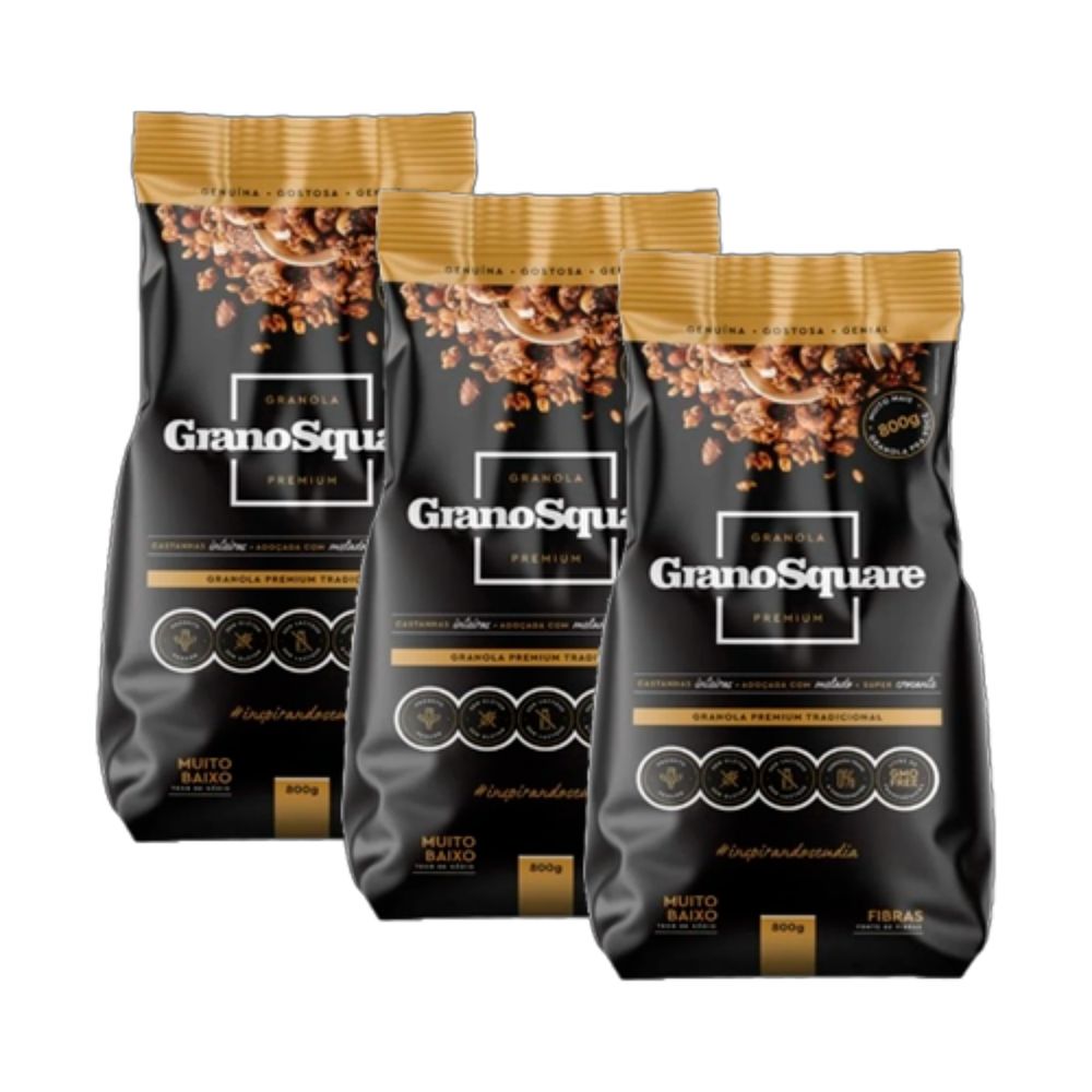 Kit 3X: Granola Premium Tradicional Sem Glúten GranoSquare 800g