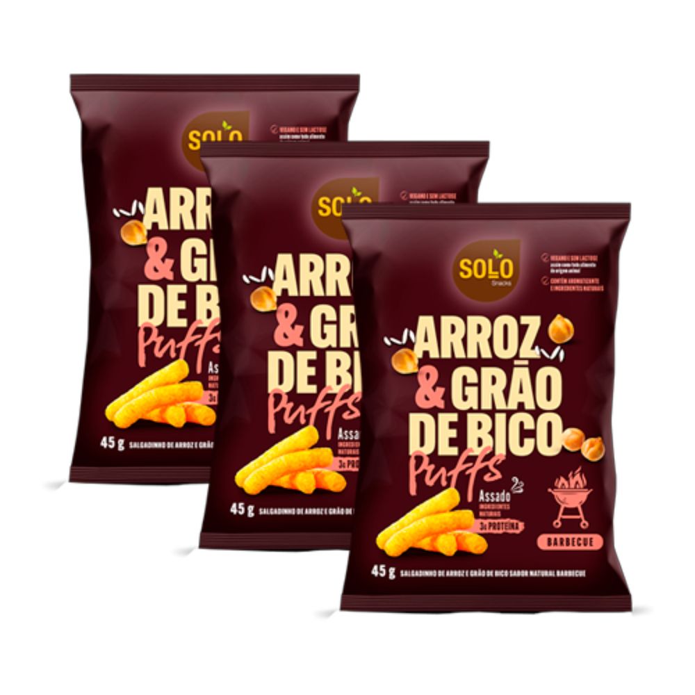 Kit 3X: Snack Puffs Arroz e Grão de Bico Barbecue Solo Snacks 45g