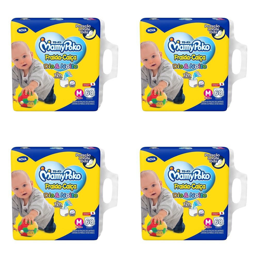 Kit 4 Fraldas Calça Dia&Noite MamyPoko "M" c/ 68 Unidades cada