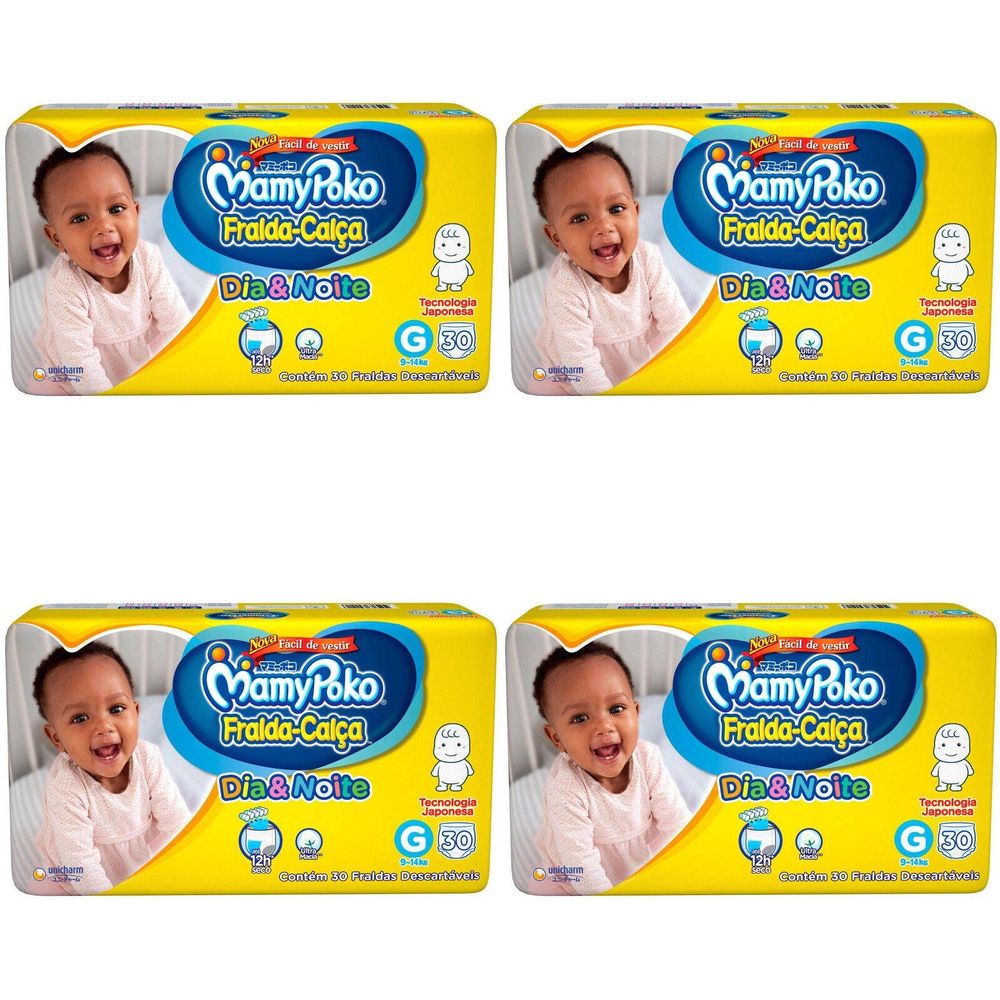 Kit 4 Fraldas Calça Mamypoko Dia e Noite G 30 Unidades cada