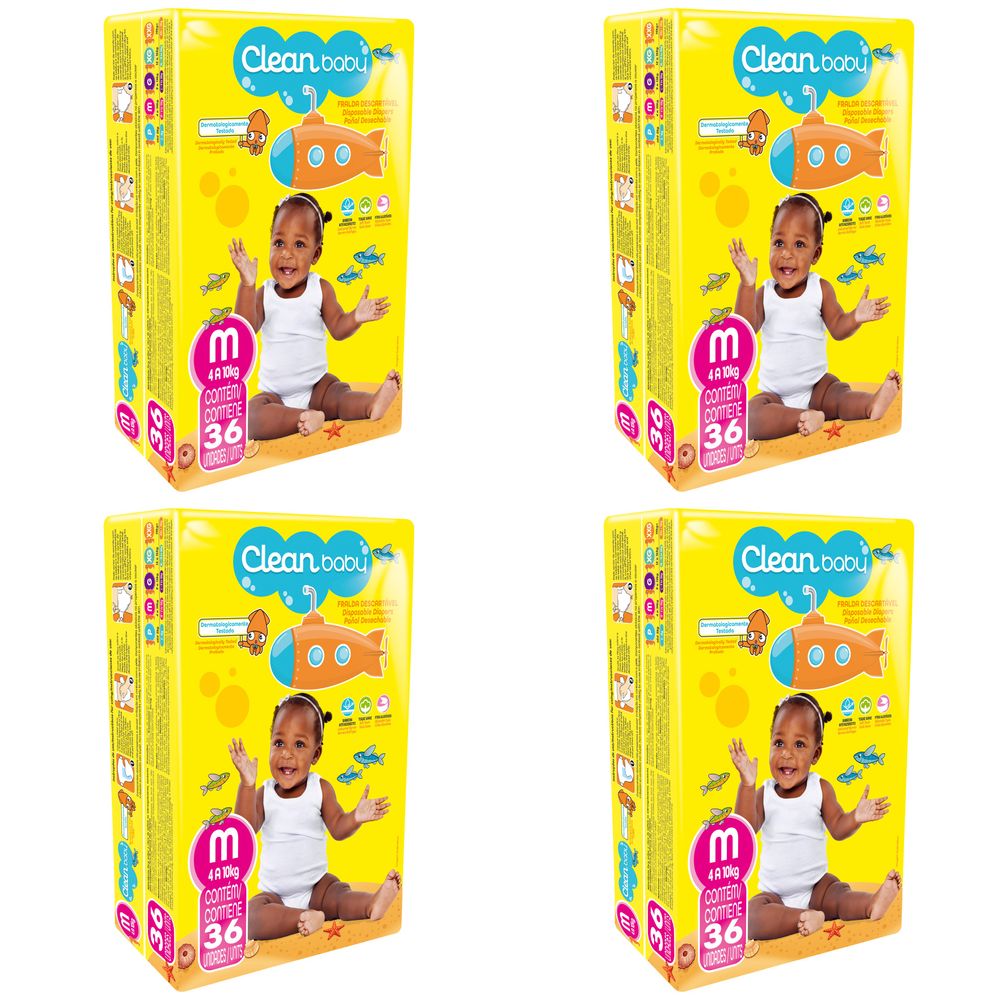 Kit 4 Fraldas Clean Baby Jumbo M c/36 Unidades