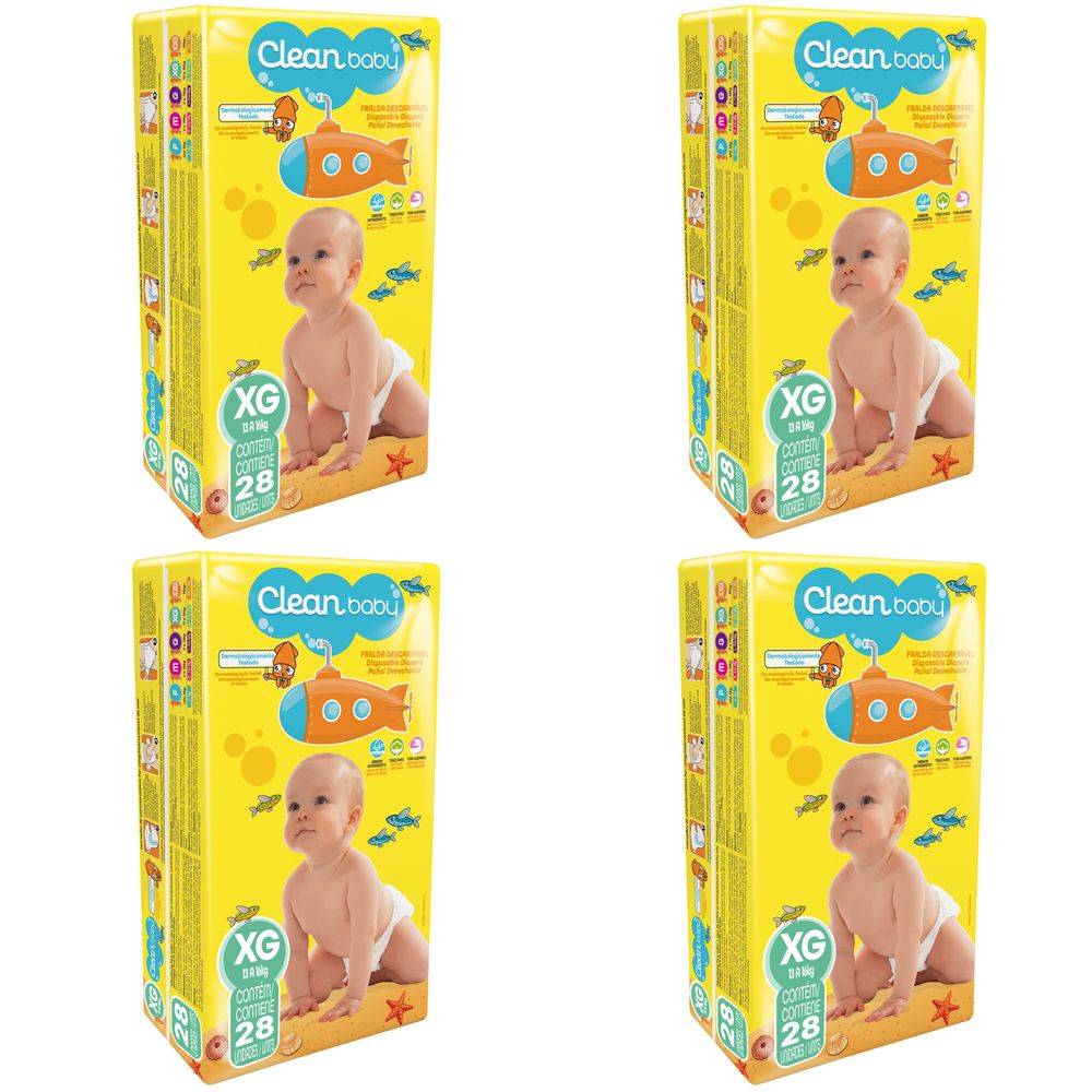 Kit 4 Fraldas Clean Baby Jumbo Xg c/28 Unidades cada