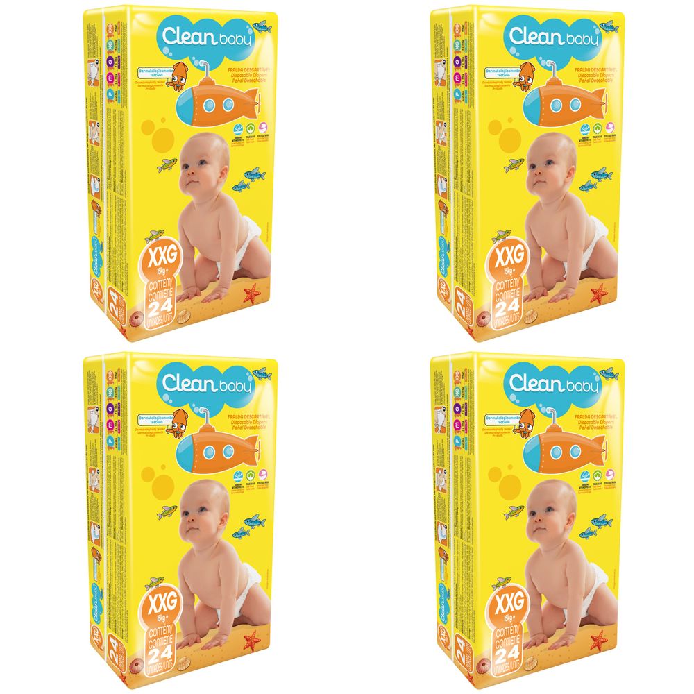 Kit 4 Fraldas Descartáveis Clean Baby Jumbo Xxg c/24 Unidades
