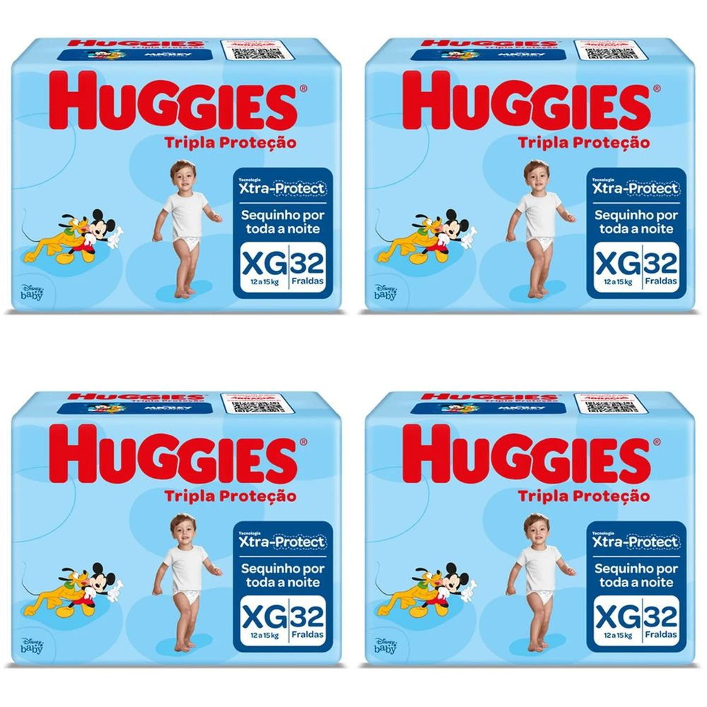 Kit 4 Fraldas Huggies Tripla Proteção Tamanho XG 32 Unidades cada