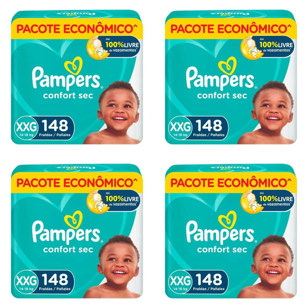 Kit 4 Fraldas Infantil Pampers Comfort Sec Xxg 14 A 18Kg Pacote 148 Unidades cada