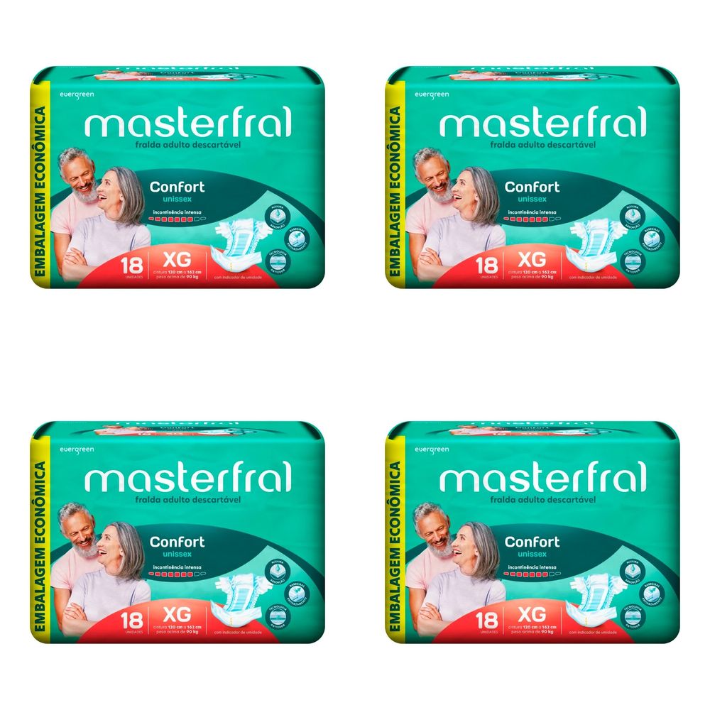 Kit 4 Fraldas Masterfral Confort Eco Xg 18 Unidades cada