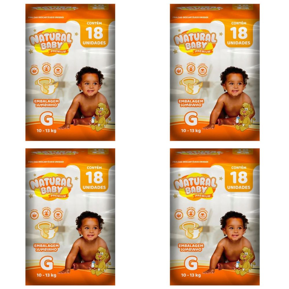 Kit 4 Fraldas Nat. Baby Premium Jumbinho G C/18 Unidades cada