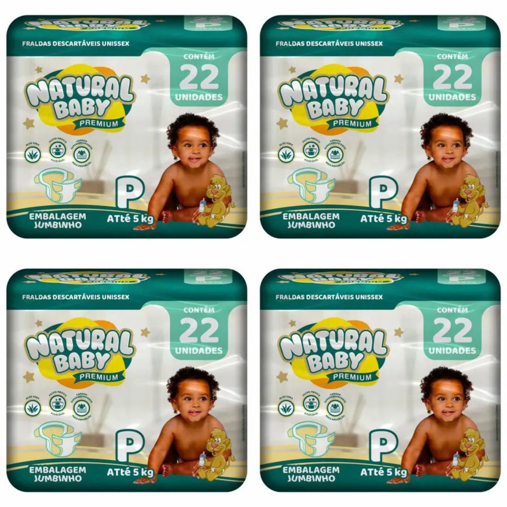 Kit 4 Fraldas Natural Baby Premium Jumbinho P c/22 Unidades cada