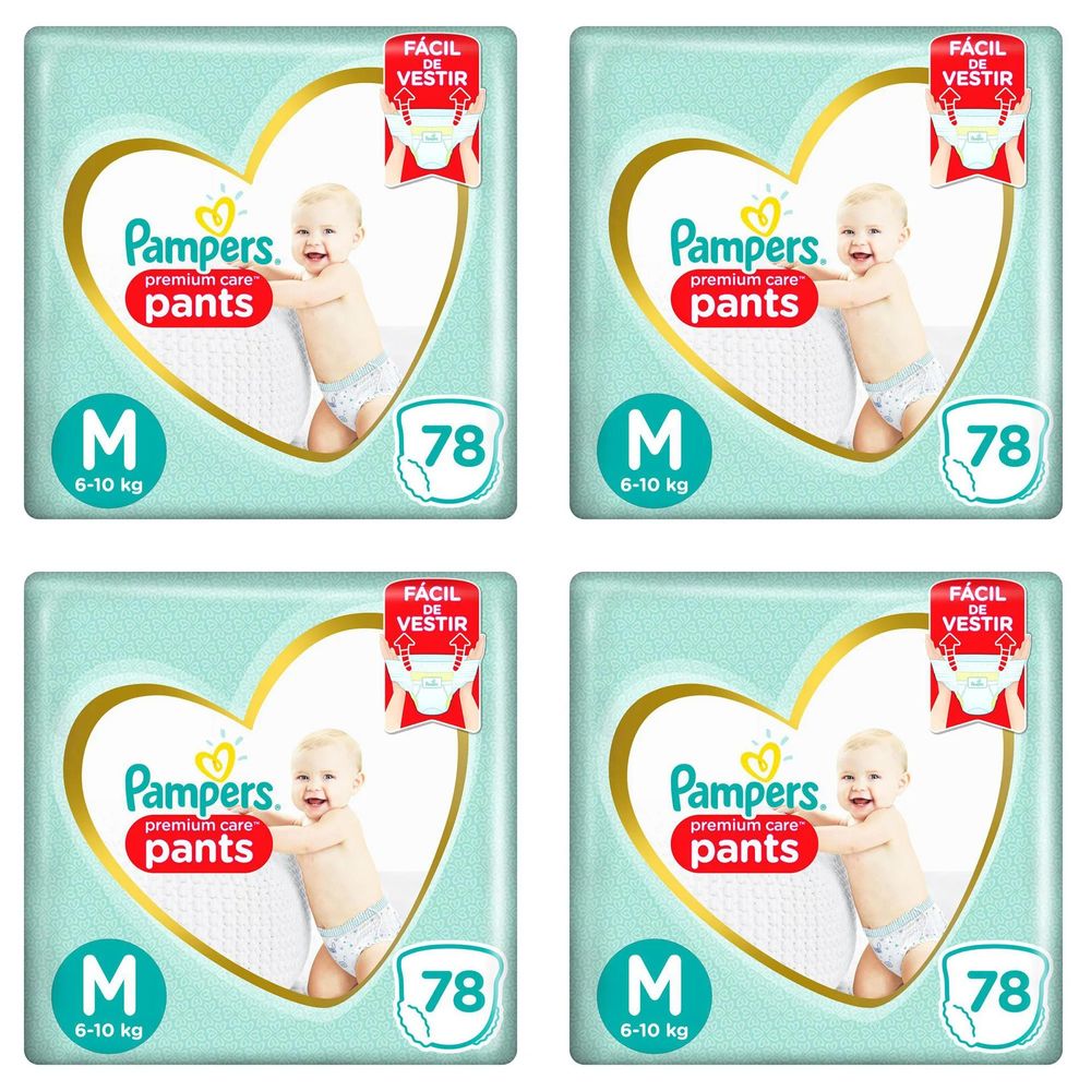 Kit 4 Fraldas Pampers c/ Pants Top M c/78 Unidades cada