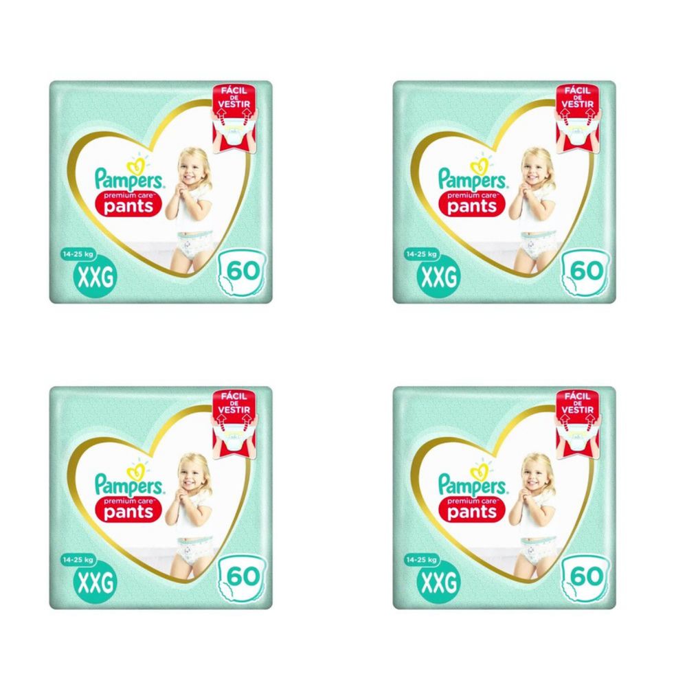 Kit 4 Fraldas Pampers c/ Pants Top Xxg c/60 Unidades cada