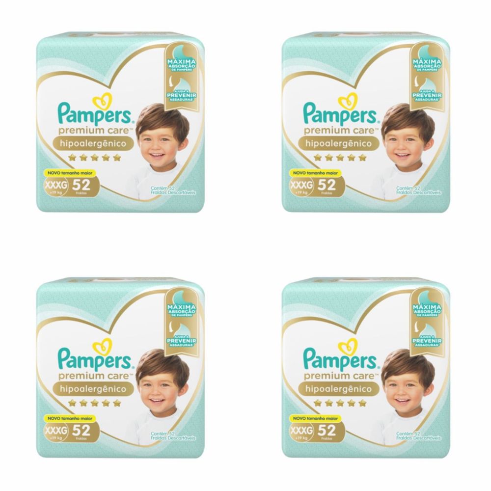 Kit 4 Fraldas Pampers c/ Xxxg 52 Unidades cada