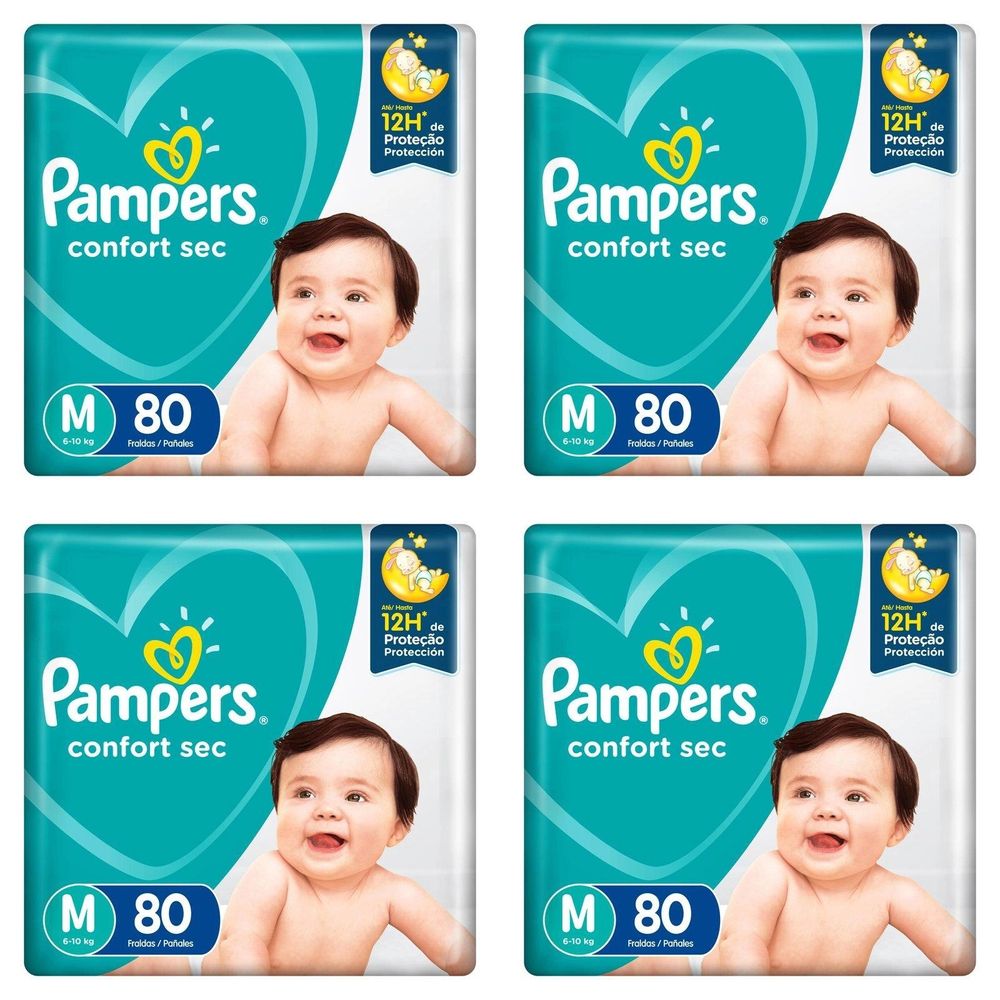 Kit 4 Fraldas Pampers Confort Sec M c/80 Unidades cada