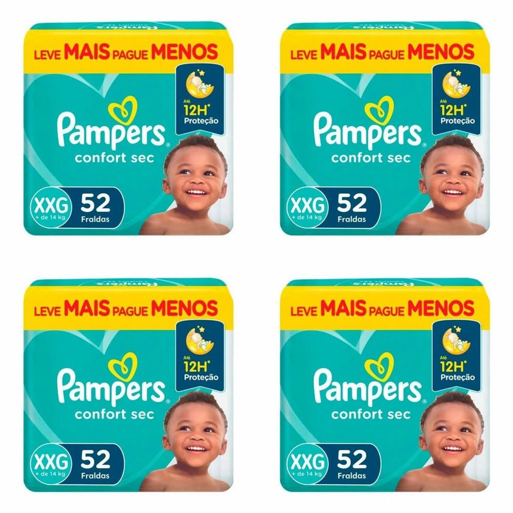 Kit 4 Fraldas Pampers Confort Sec Xxg 52 Unidades cada