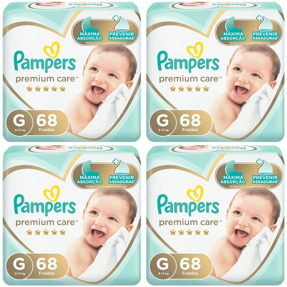Kit 4 Fraldas Pampers Premium Care G 68 Unidades cada