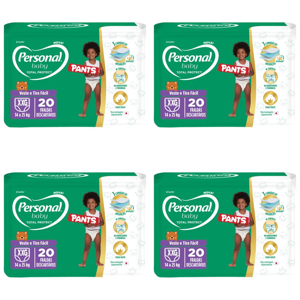 Kit 4 Fraldas Personal Baby Total Protect Pants XXG 20 Unidades cada