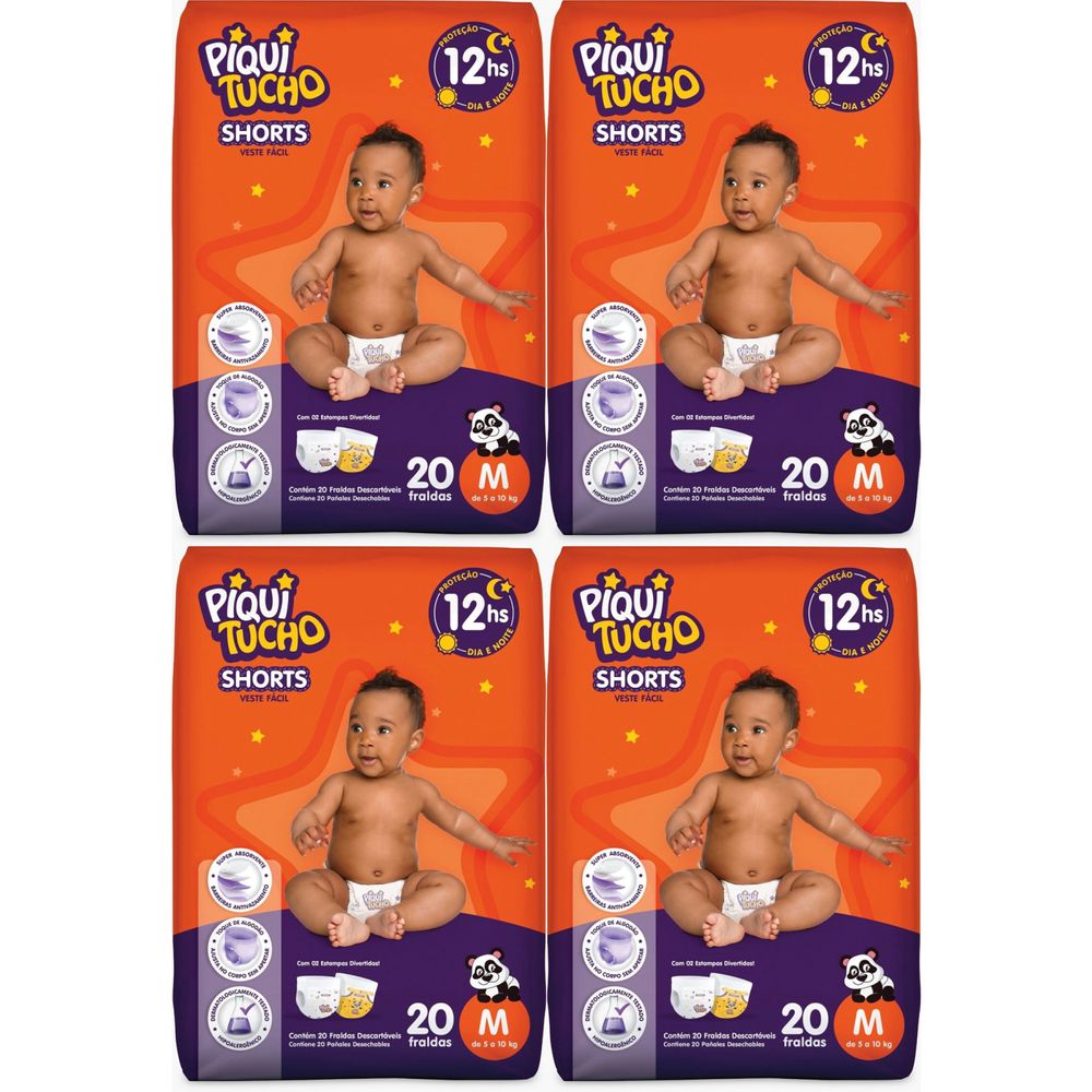 Kit 4 Fraldas Shorts Piquitucho Jumbinho (M) 20 Unidades cada