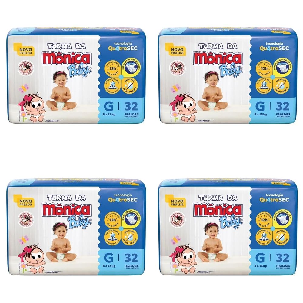 Kit 4 Fraldas Turma da Mônica Econômica G com 32 Unidades cada