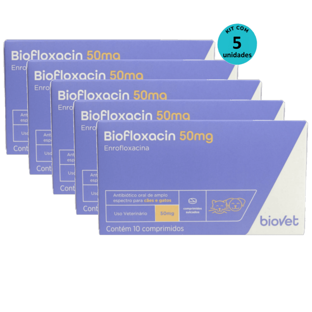 Kit 5 Biofloxacin 50mg C/ 10 Comprimidos- Biovet