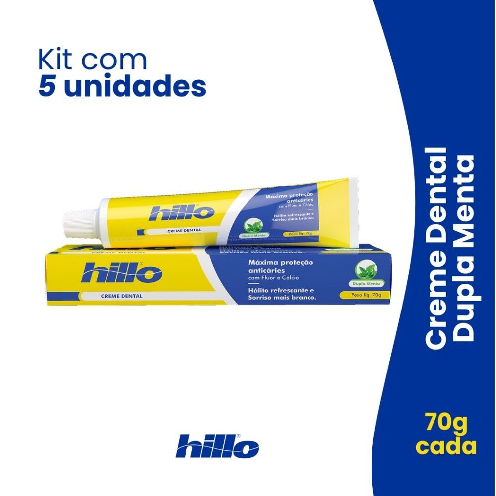 Kit 5 Cremes Dentais 70g Hillo - Dupla Menta Anticáries Proteção Completa