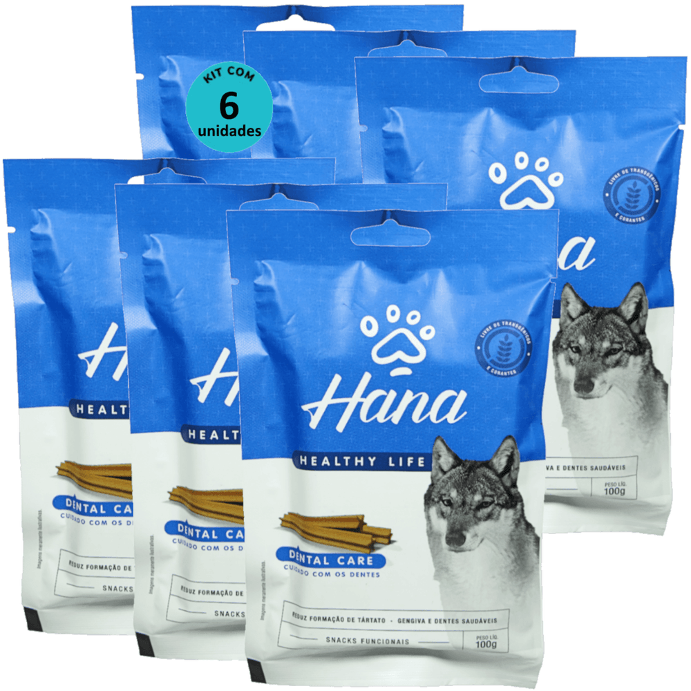 Kit 6 Snacks Hana Healthy Life Dental Care- Cuidado C/ os Dentes- P/ Cães Adultos- 100g