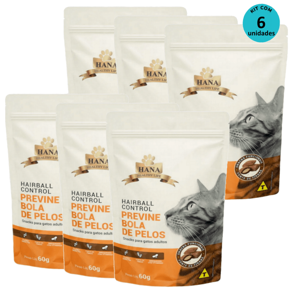 kit 6 Snacks Hana Healthy Life Hairball Control P/ Gatos Adultos- 60g