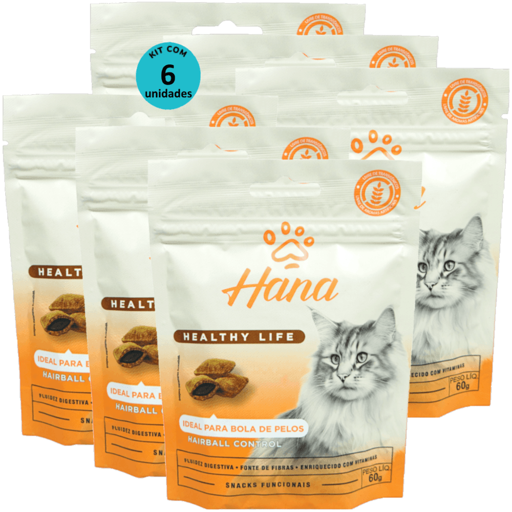 kit 6 Snacks Hana Healthy Life Hairball Control P/ Gatos Adultos- 60g