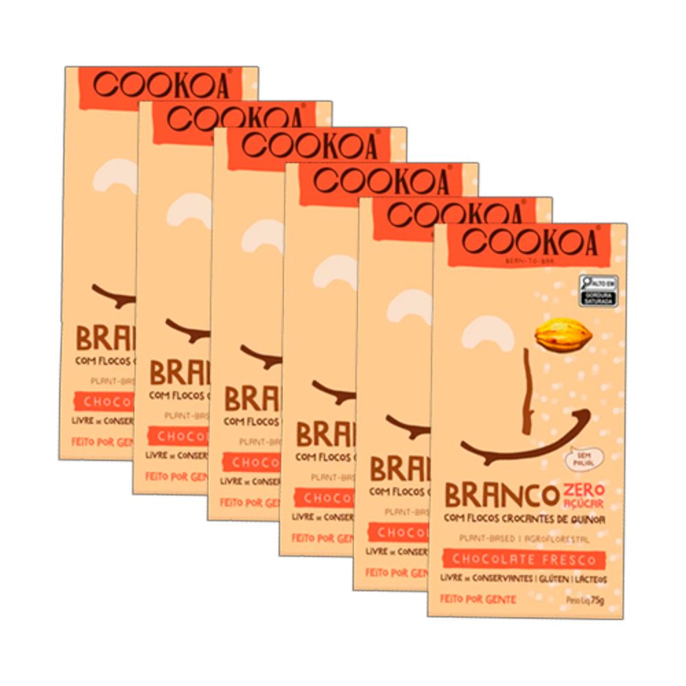 Kit 6X: Chocolate Branco Crocante Zero Açúcar Vegano Cookoa 75g