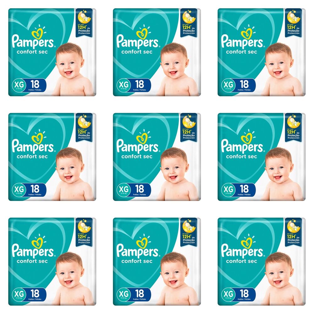 Kit 9 Fraldas Confortsec ”Xg” Pampers c/18 Unidades cada
