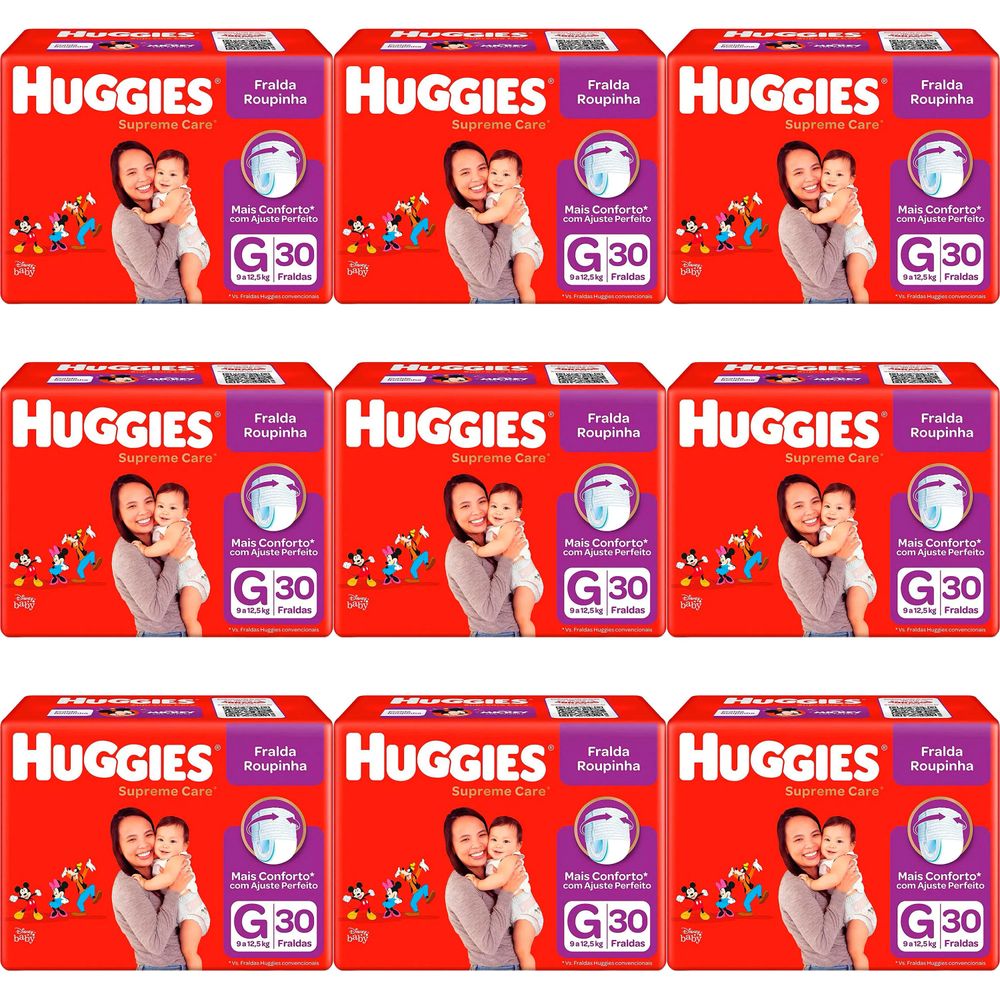 Kit 9 Fraldas Huggies Roupinha Supreme Care G c/30 Unidades