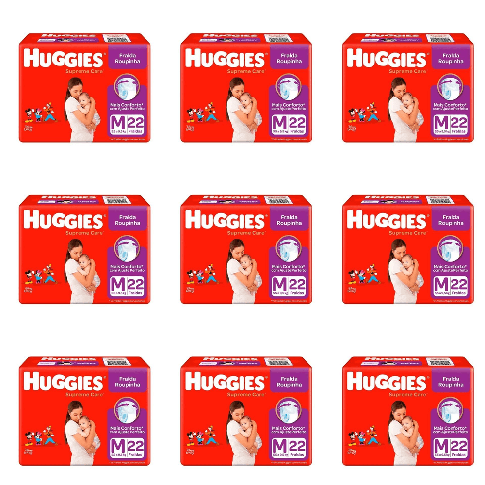 Kit 9 Fraldas Huggies Roupinha Supreme Care Jumbo M c/22 Unidades cada