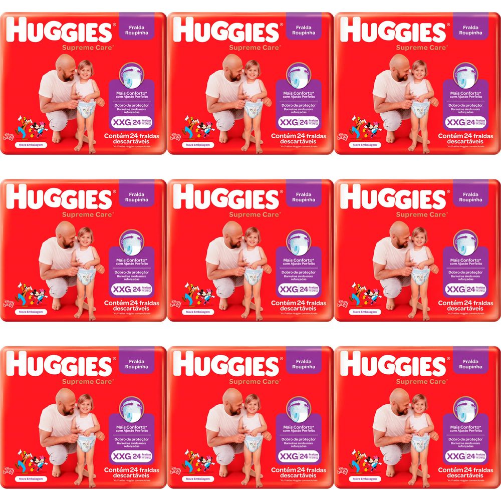 Kit 9 Fraldas Huggies Roupinha Supreme Care Xxg c/24 Unidades cada