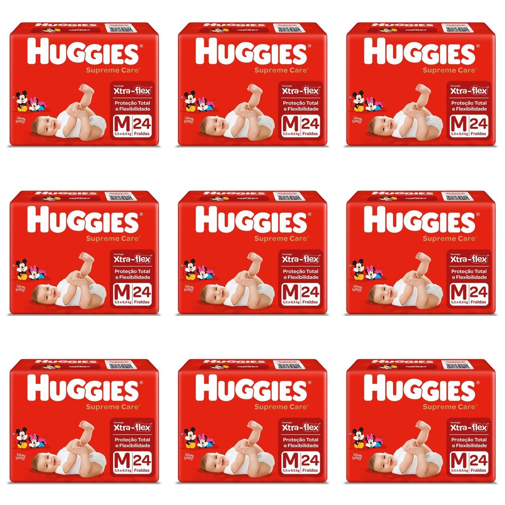 Kit 9 Fraldas Huggies Supreme Care Jumbo M c/24 Unidades