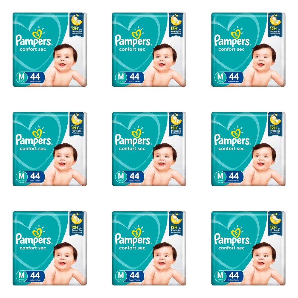 Kit 9 Fraldas Pampers Confort Sec M c/44 Unidades cada