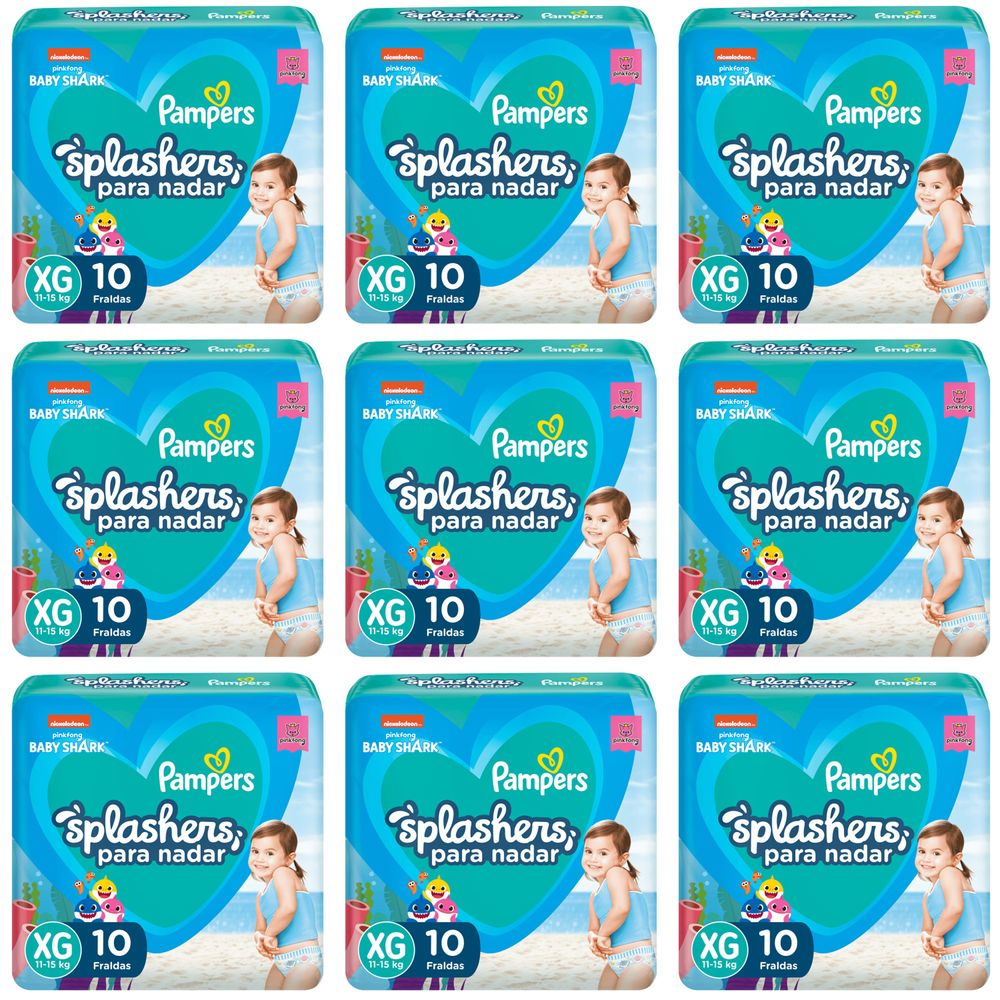Kit 9 Fraldas Pampers Splashers G/Xg c/10 Unidades cada