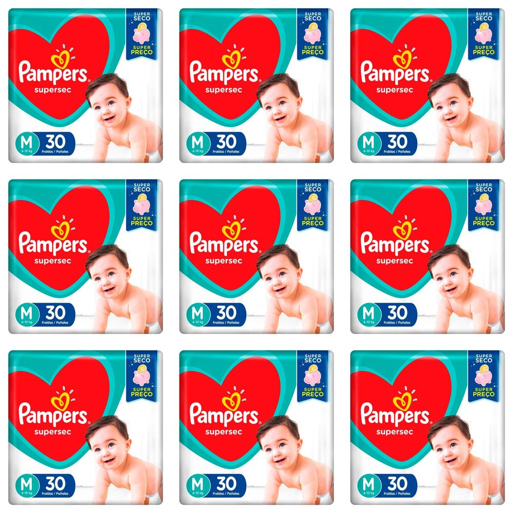 Kit 9 Fraldas Pampers Supersec M c/30 Unidades cada