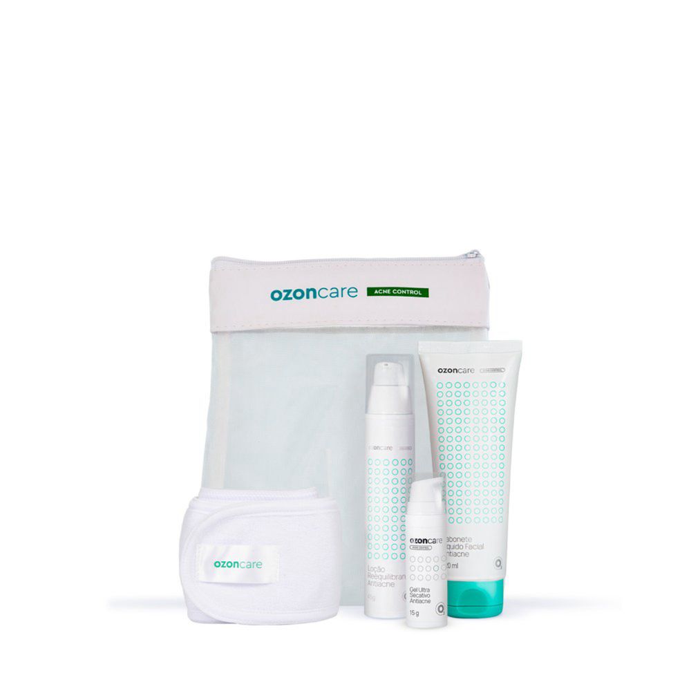 Linha Acne Control - Kit de Cuidados Especiais para Pele AcneicaCombata a acne e restaure o equilíbrio da sua pele com o Kit Acne Control. Este conjunto exclusivo inclui um Sabonete Líquido Facial Antiacne, uma Loção Reequilibrante Antiacne e um Gel Ultra secativo Antiacne para tratar peles oleosas, acneicas ou com tendência à acne. Com ingredientes de ação secativa, cicatrizante e anti-inflamatória, este kit ajuda a reduzir a produção de óleo, controlar a oleosidade, diminuir os poros e combater as manifestações acneicas.Principais Benefícios:Tratamento completo para pele acneica.Ação antibacteriana e anti-inflamatória.Reduz a oleosidade da pele.Auxilia na retração dos poros.Prevenção de marcas e efeito "matificante".Resultados Clínicos:50% dos participantes apresentaram melhora na oleosidade da pele. 63% apresentaram melhora nas pápulas. 60% apresentaram melhora nas pústulas. 53% apresentaram melhora nos comedões (cravos).Confie na qualidade da Linha Acne Control, assim como em toda a linha Ozoncare. Nossos produtos são veganos, livres de parabenos, não testados em animais e dermatologicamente testados. Além disso, você receberá uma necessaire exclusiva e uma faixa de cabelo Ozoncare como brinde neste kit. Cuide da sua pele com os melhores cuidados antiacne disponíveis.