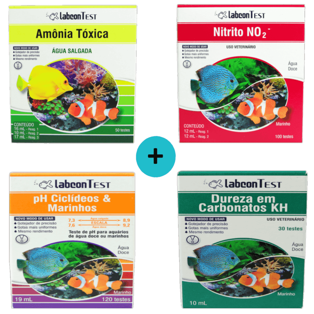 Kit Amônia Água Salgada + Nitrito + PH Ciclídeos Marinhos + Dureza em Carbonatos KH