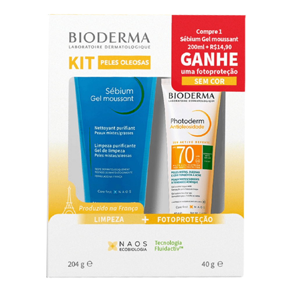 Kit Bioderma Gel de Limpeza Sebium Moussant Antioleosidade 200ml + Protetor Solar Facial FPS 70 Photoderm 40g