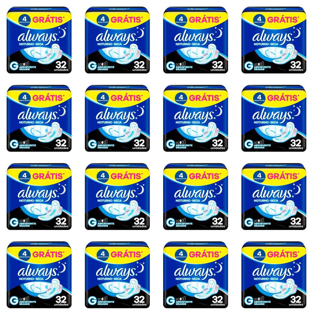 Kit c/16 Absorventes Cobertura Seca Noturno Com Abas Always Simples 32 Unidades cada